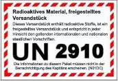 - Etikettierung und Kennzeichnung: Auf der Außenseite muss "UN2910" angebracht sein; Es sind keine Gefahrzettel erforderlich.
